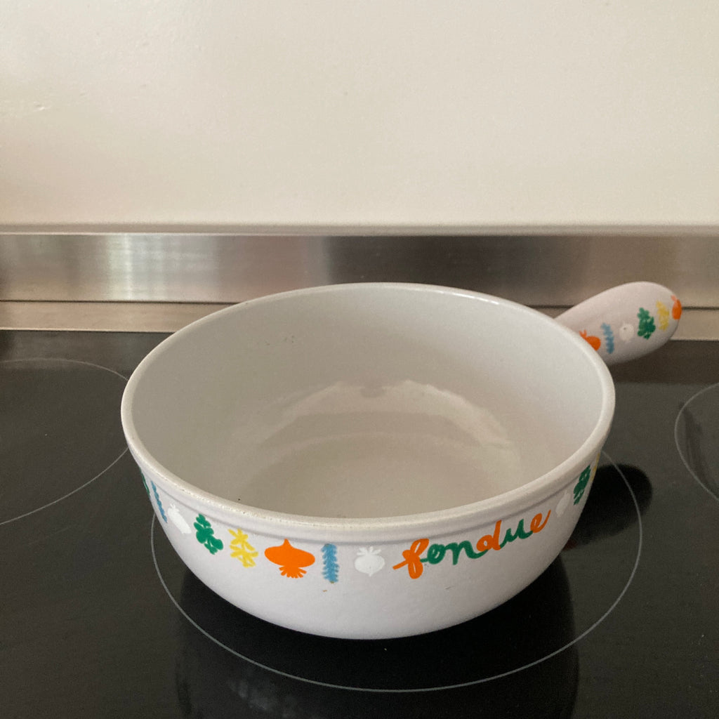 In zeer goede staat verkerend Le Creuset fonduestel bestaande uit een gietijzeren fonduepan (ook te gebruiken als sauspan), een Le Creuset onderstel. de pan is van geëmailleerd gietijzer en heeft een diameter van 22 cm. Geschikt voor gas en inductie fornuizen. de pan kan ook in de oven.