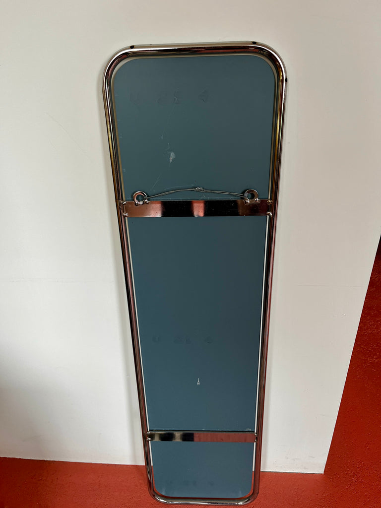 Mooie vintage langwerpige en smalle passpiegel met een afmeting van 90x24 cm. De spiegel heeft een stijlvol metalen buisframe wat zorgt voor een unieke uitstraling. Perfect voor de hal, slaapkamer of woonkamer.