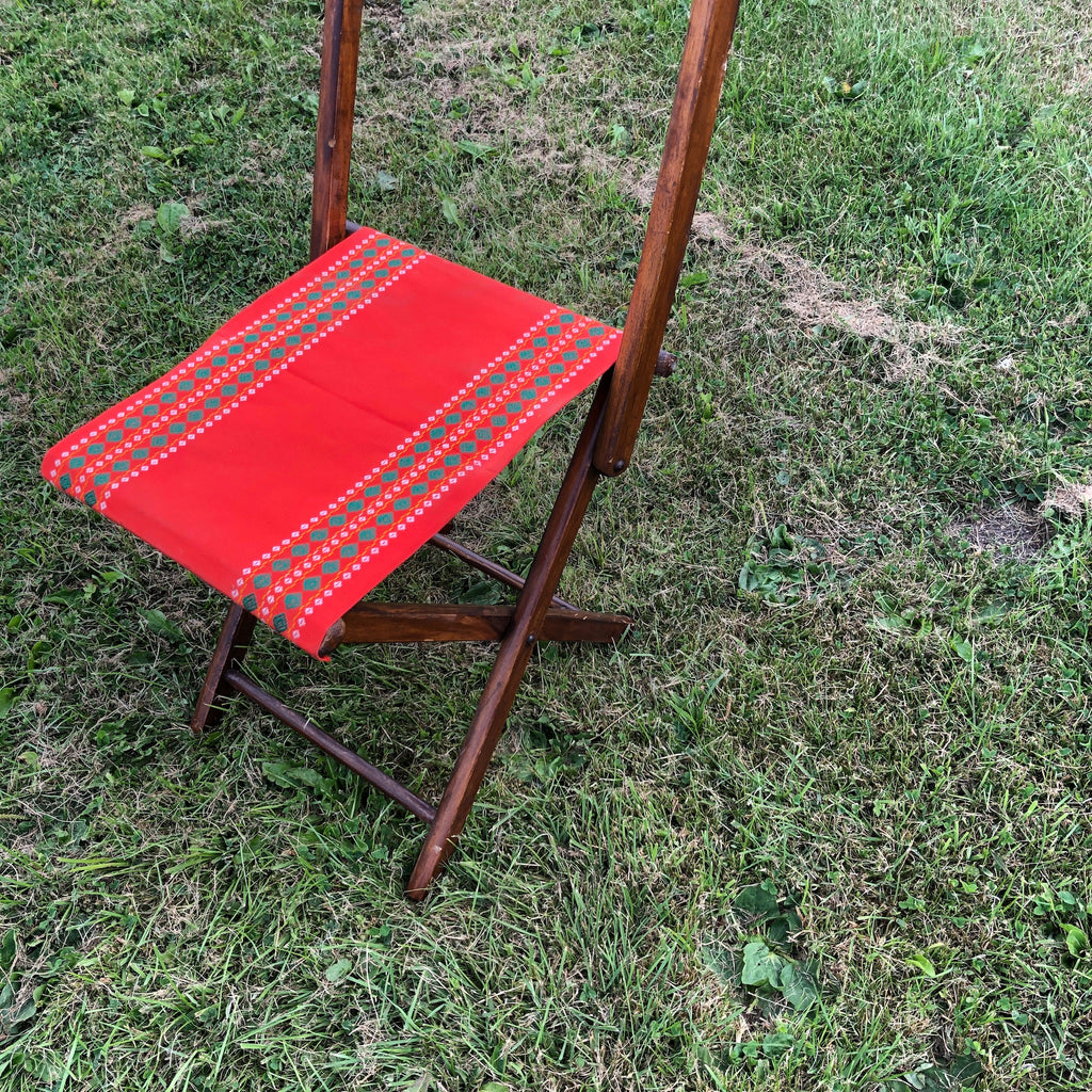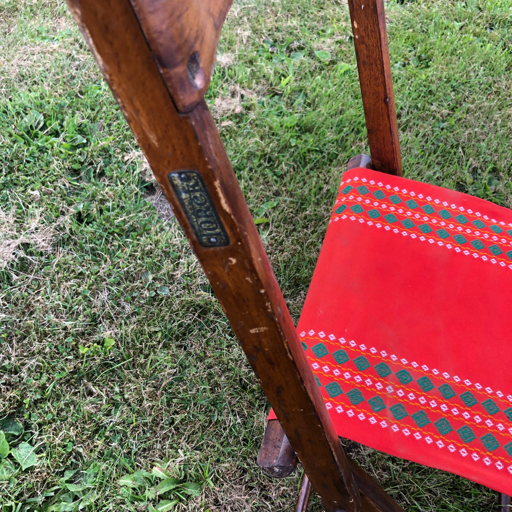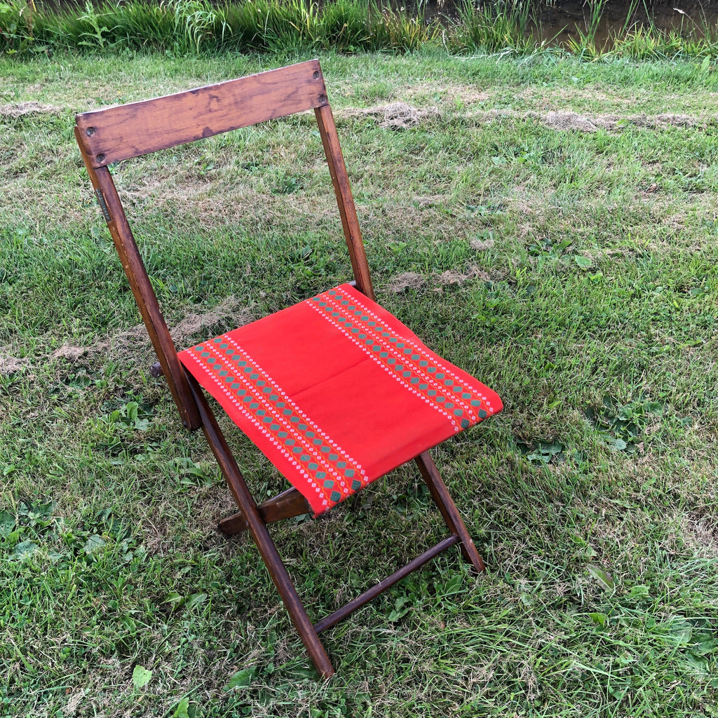 Mooi, houten Torek klapstoeltje met canvas bekleding.